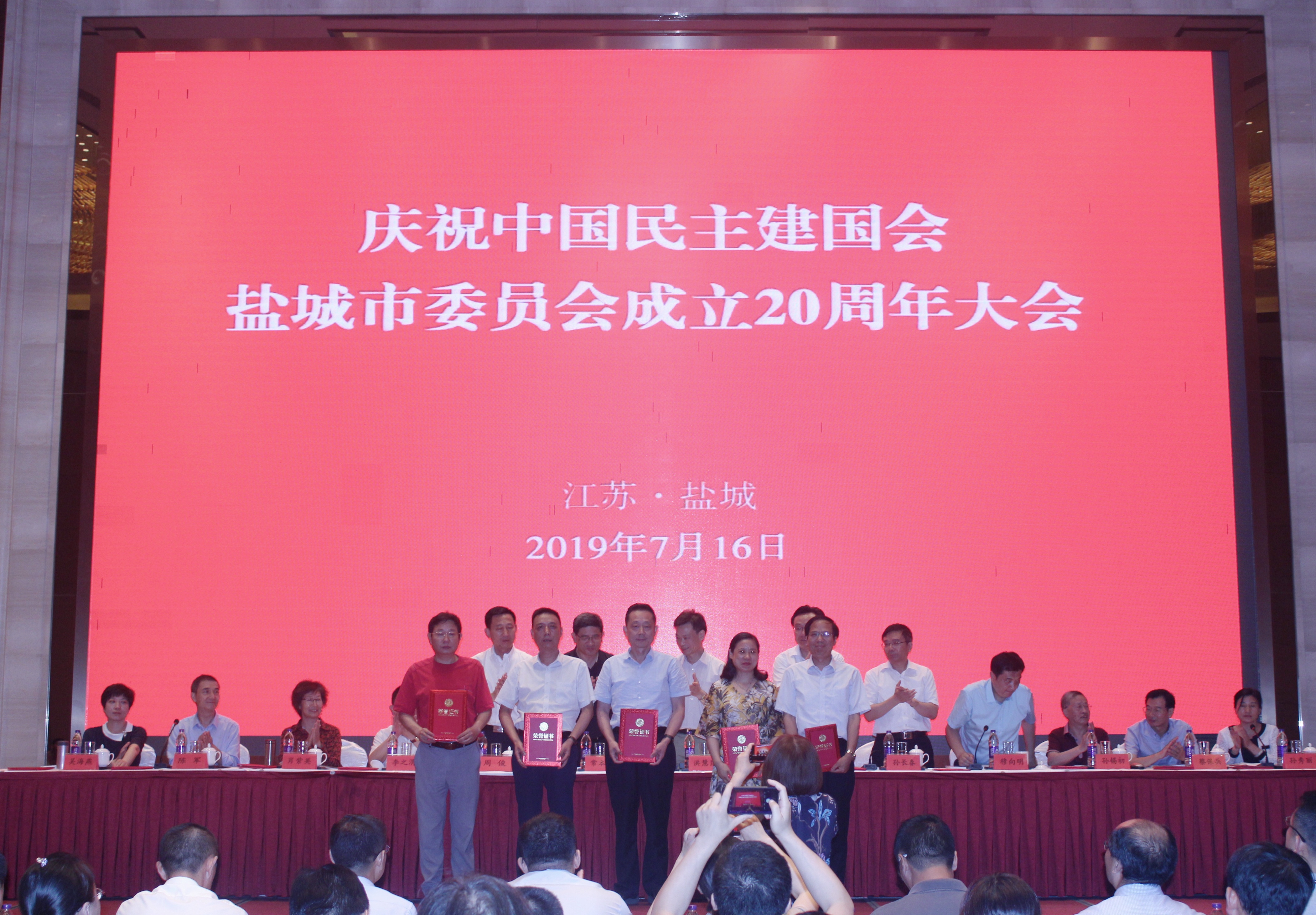 日前,中国民主建国会盐城市委员会在盐隆重集会,庆祝中国民主建国会盐城市委员会成立20周年。会上,表彰了一批在盐城民建发展历程中成绩突出的集体和个人,民建交通支部等5个支部(总支)被授予“中国民主建国会盐城市先进集体称号”,交通支部孙东祥、李治国等29名同志被表彰为“优秀会员”。