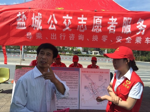 启动仪式后,盐城公交总公司组织文明交通志愿者走进场站、走进车厢,向市民发放公交出行指南、绿色出行倡议书,主动靠前为市民群众提供公交出行咨询服务。