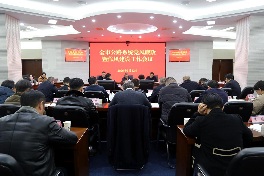3月12日,2026年度全市公路系统党风廉政暨作风建设工作会议顺利召开,会议集中传达学习中央、省、市纪委全会精神及交通运输行业主管部门全面从严治党暨警示教育工作会议精神,全面总结工作、深入分析形势、周密部署任务。市公路中心党委书记、主任唐海峰主持会议并传达上级有关会议精神,就抓好贯彻落实提出明确要求;市公路中心党委委员、纪委书记徐成臣作工作报告,对2026年度重点工作进行安排部署;市纪委监委第十三派驻纪检监察组副组长张禹生到会指导并讲话。