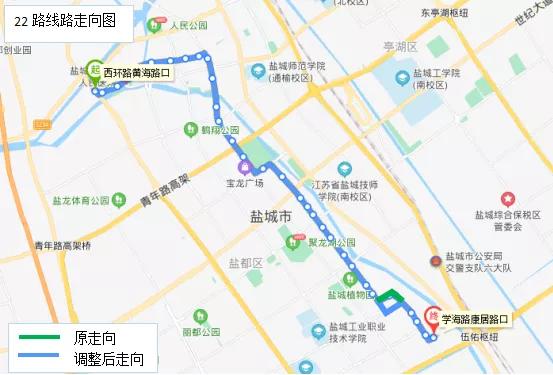 22路:西环路黄海路口开往学海路康居路口方向,保持原走向不变。