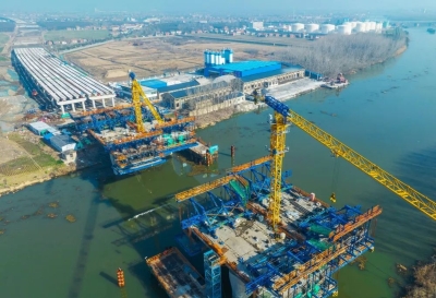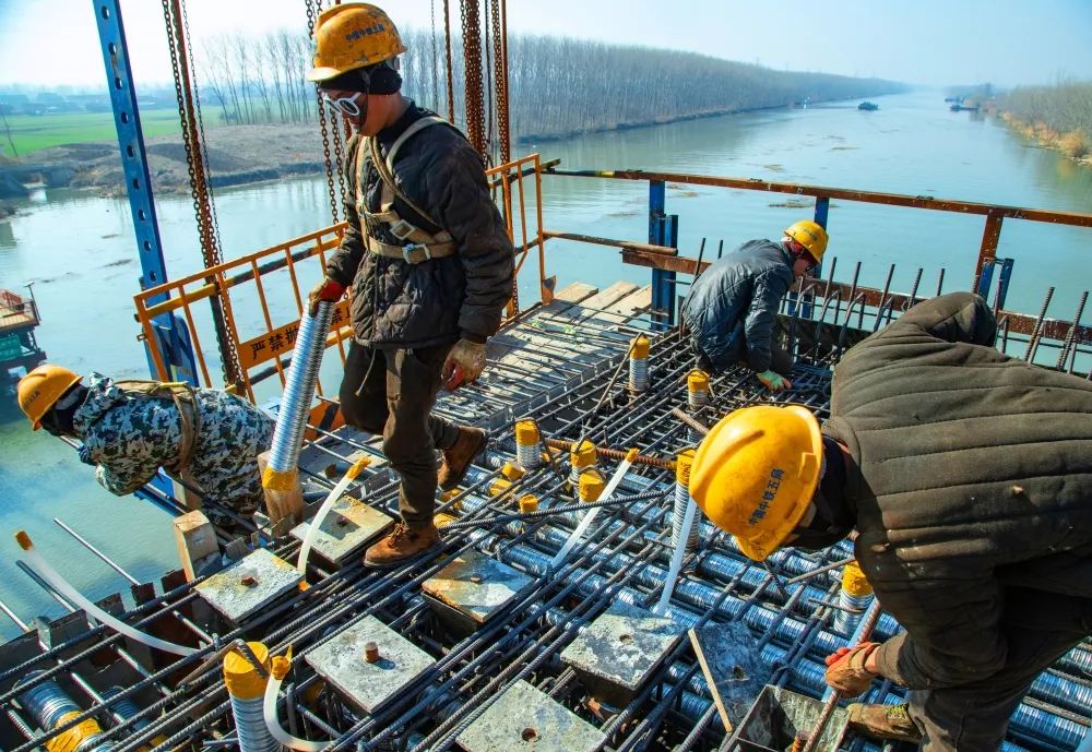 2月20日,春光正好,盐城市盐阜快速通道黄沙港特大桥工地一片繁忙景象,各工种施工交叉穿插,作业工人娴熟有序、忙而不乱。盐阜快速通道是204国道的重要组成部分,路线全长41.4公里,总投资约71.15亿元,按双向六车道一级公路标准建设,主线设计时速100公里,建成后将拉近盐城主城区与市域北部地区的距离,进一步提升城市发展能级。