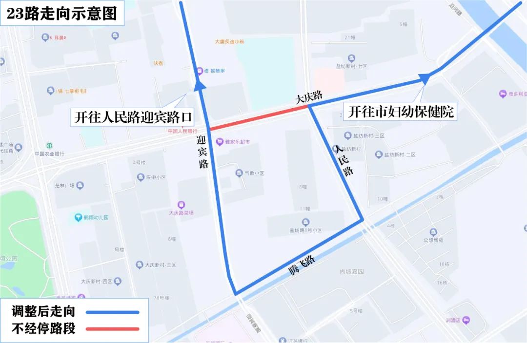 因大庆路(人民路至迎宾路段)道路施工,7月15日起,公交线路17路、23路临时绕道行驶,具体如下: