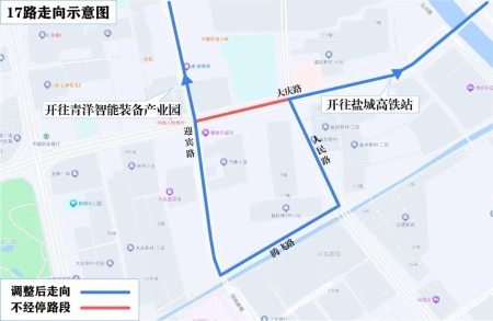 新增临时停靠站点:盐纺新村、腾飞路人民路口、迎宾路腾飞路口、市气象局。