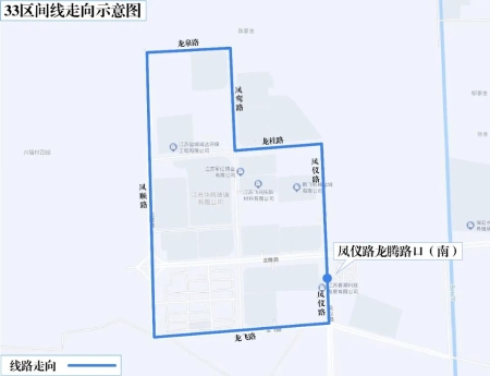 线路走向:凤仪路龙腾路口(南)、凤仪路、龙飞路、凤顺路、龙泉路、凤鸾路、龙桂路、凤仪路、凤仪路龙腾路口(南)。