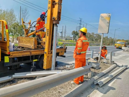 4月6日中午11:30,盐城市公路机械维修服务中心接到上级指令,231省道(K9+900上行至K9+950)处防撞护栏因车辆违章导致损毁,维修中心应急抢修队立即调动在331省道养护的6名队员和2辆应急抢修车辆赶往现场处置,于下午14:25完成抢修任务,保障清明假期期间国省道路安全畅通。