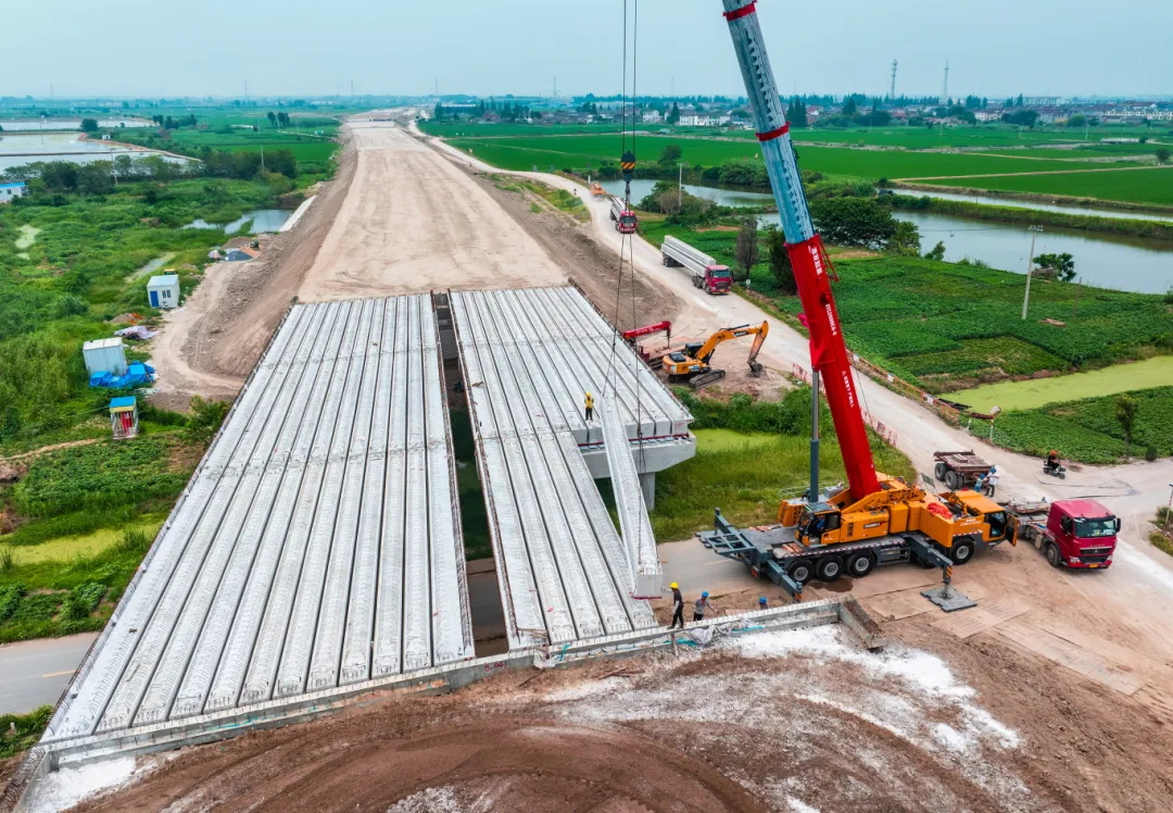 目前正加紧推进剩余空心板梁吊装施工