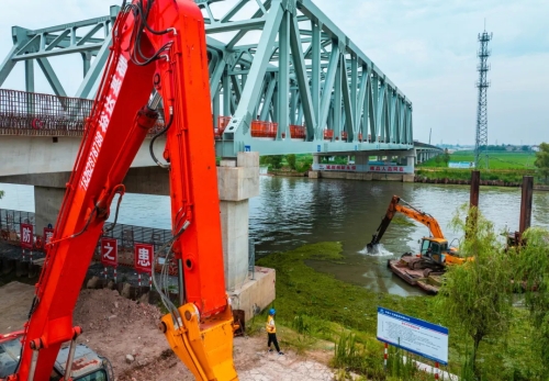 目前,除已完成的涉铁段外,在建的三个路基桥涵标桥面铺装已完成62%;防撞护栏完成55%;现浇箱梁施工仅剩最后半联,路基回填压实完成96%;水稳底基层、基层均完成18%;泰东河大桥岸边防护工程已启动施工。