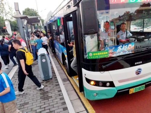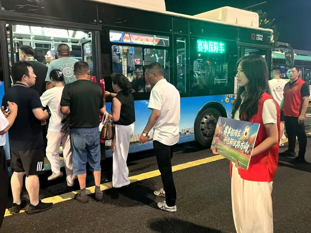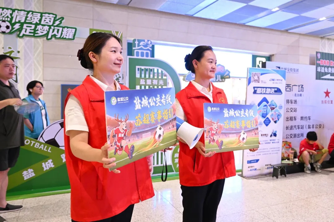 为做好交通保障,盐城公交赛前便在高铁站西广场配备12辆专属公交车,15分钟一班往返高铁站与奥体中心,B1线、B支1线等11条公交线路同步助力,赛后90辆公交车待命疏运。更贴心的是,赛事期间,持有球票、外市籍身份证或大学生证件的球迷,可不限次数免费乘坐市区公交。此外,盐城公益车队组织的125辆贴着“球迷爱心接送车”的私家车在高铁站停车场整齐排列,为外地球迷提供直达赛场的免费接送服务。